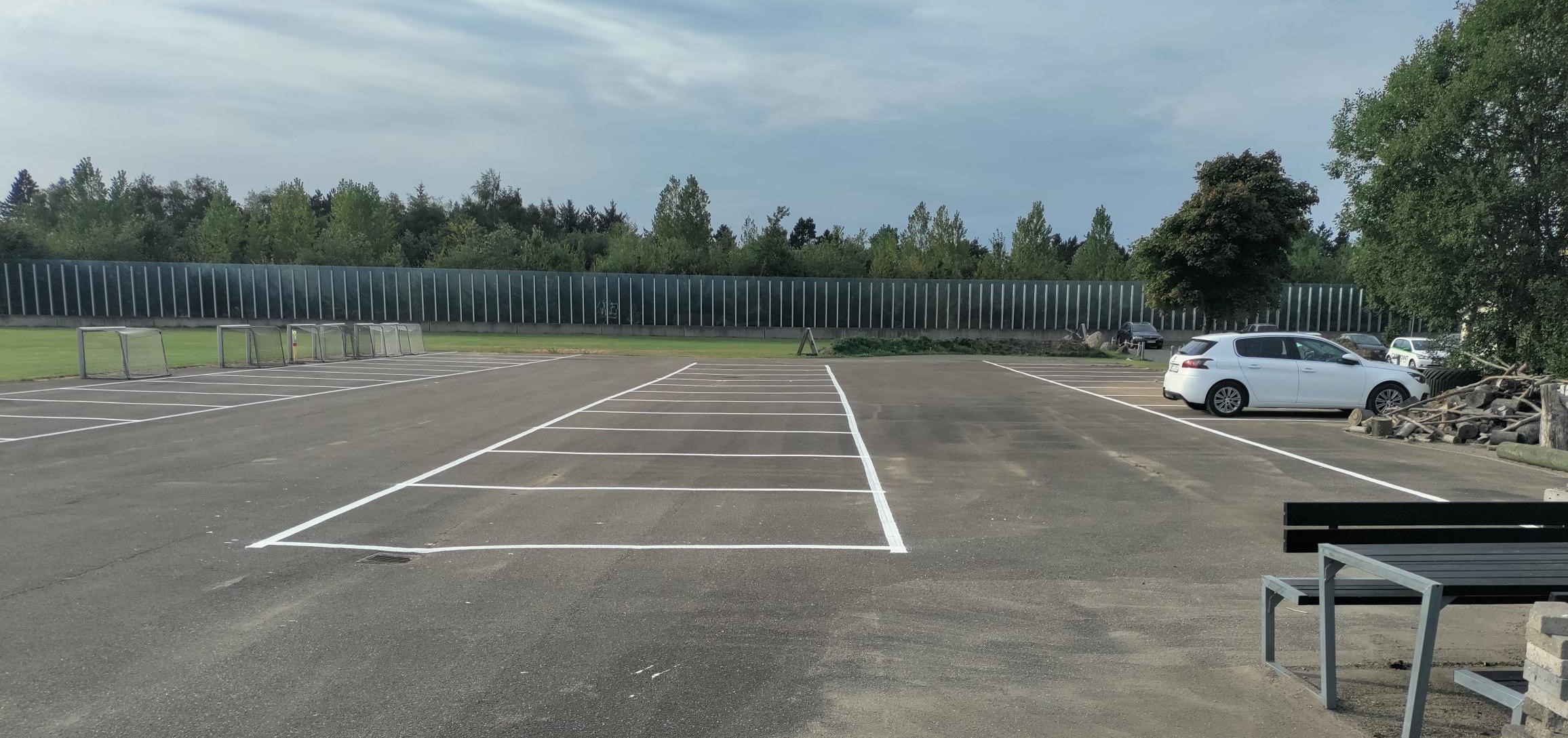 Vores "kridtfolk" har lavet parkeringsbåse bag hallen.