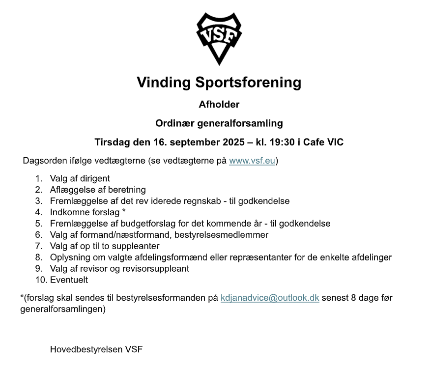 VSF - Generalforsamling tirsdag d. 16/9-2025 kl. 19.30